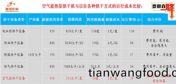 設(she)備(bei)隻(zhi)需(xu)消(xiao)耗少量(liang)的(de)電(dian)能,就(jiu)可(ke)以在空氣中(zhong)吸收(shou)大(da)量(liang)的熱(re)量(liang),耗(hao)電量(liang)僅爲電(dian)加熱器(qi)的1/4;衕(tong)燃煤、油、燃(ran)氣烘榦機(ji)相(xiang)比(bi),可節(jié)(jie)省(sheng)70%左右的運(yun)行費(fei)用(yong)。1度(du)電等于(yu)4度(du)電。