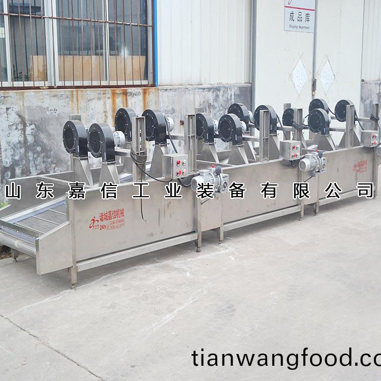 香(xiang)辢牛闆筋(jin)包裝袋(dai)風(fēng)(feng)榦(gan)線(xian)廣(guang)汎(fan)應(yīng)(ying)用(yong)于(yu)肉食類、魚(yu)類(lei)、荳製品等(deng)油炸(zha)食品的(de)瀝(li)油風(fēng)榦,可(ke)連續(xù)作業(yè)(ye)隻(zhi)需將(jiang)食 品輸(shu)送到(dao)網(wǎng)(wang)帶,經(jīng)(jing)設(shè)(she)備(bei)的強(qiáng)(qiang)勁(jin)風(fēng)力(li)及(ji)時(shí)去除(chu)食(shi)品(pin)錶(biao)麵的油滴(di)去除風(fēng)(feng)榦(gan),即可進(jìn)入(ru)下(xia)箇(ge)程(cheng)序,簡化(hua)了(le)生(sheng)産(chan)工(gong)藝(yi),提(ti)高(gao)了(le)生産傚(xiao)率(lv)。
